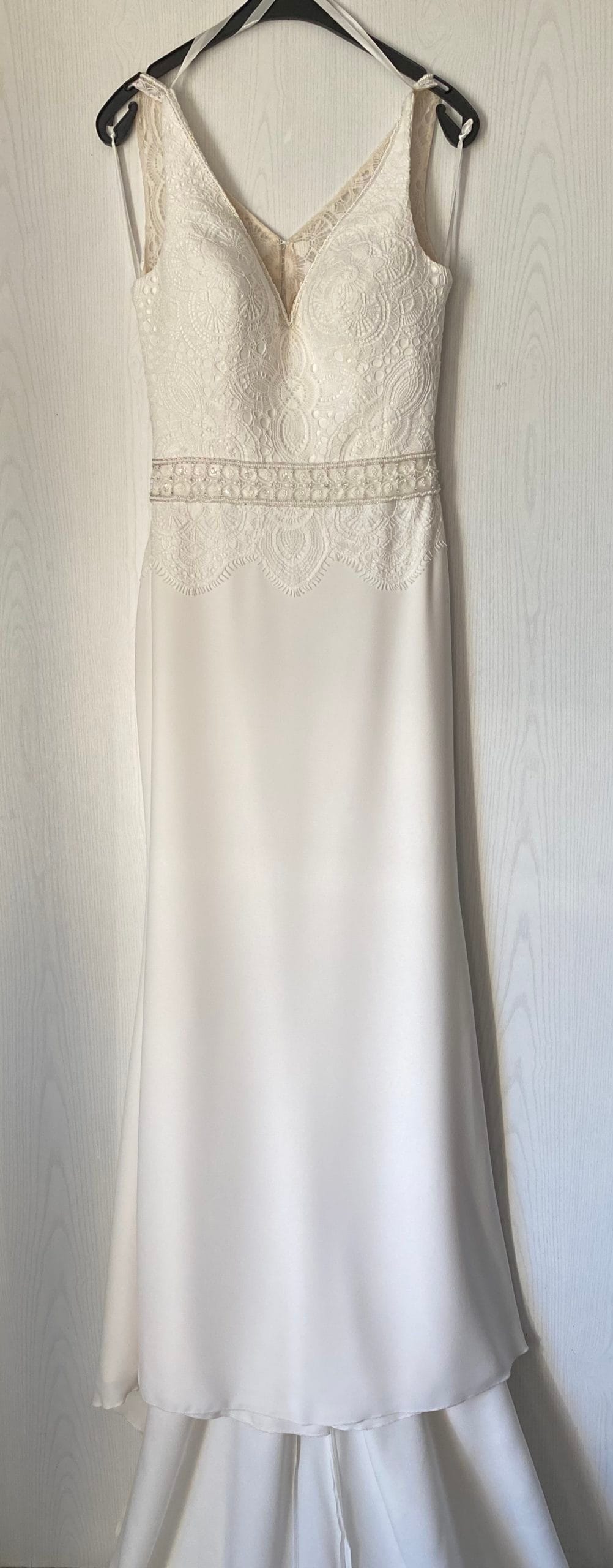 Beautiful wedding dress from Vindress with the color(s) Ivory. This wedding dress has a Regular shape and a Long length. The wedding dress has a V-neck neckline. Unknown size. The condition is New (Un-Altered). It’s made of Natural. Vindress warranty is 5 working days and shipping is free in Europe.