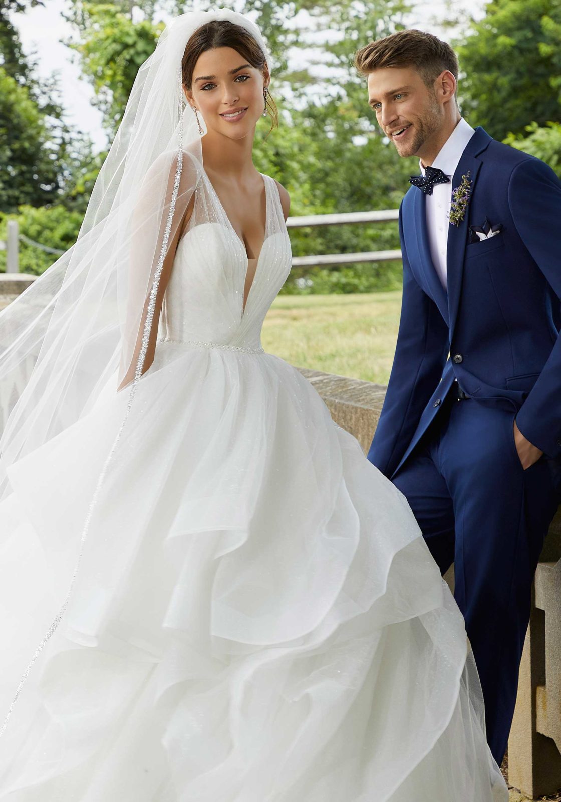 Luxurious wedding dress from Vindress with the color(s) Ivory. This wedding dress has a Regular shape and a Long length. The wedding dress has a V-neck neckline. Size 40. The condition is New (Un-Altered). It’s made of Tulle. Vindress warranty is 5 working days and shipping is free in Europe.